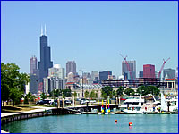 芝加哥并不是一個(gè)旅游城市,人口也只有200多萬(wàn)。如果說(shuō)觀光景點(diǎn)的話(huà),就只有位于城市中心由近40多座高樓組成的摩天大樓群,高聳入云的高樓一座連著一座,使得芝加哥整個(gè)城市看上去象是鋼筋水泥構(gòu)成的森林,充滿(mǎn)了大都市的氣魄。其中的西爾斯大廈(Sears Tower),在紐約的世貿(mào)大廈毀于恐怖事件之后,成為全美最高建筑。