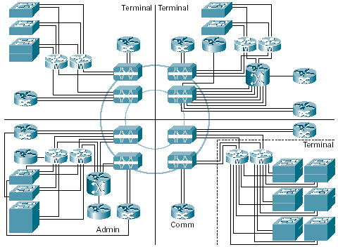 Catalyst 6500交換機的MPLS網(wǎng)絡(luò)。它可以為該機場的內(nèi)部網(wǎng)絡(luò)、每個航空公司的網(wǎng)絡(luò)和其他租戶服務(wù)提供第三層劃分。該MPLS網(wǎng)絡(luò)還部署在一個采用了Cisco