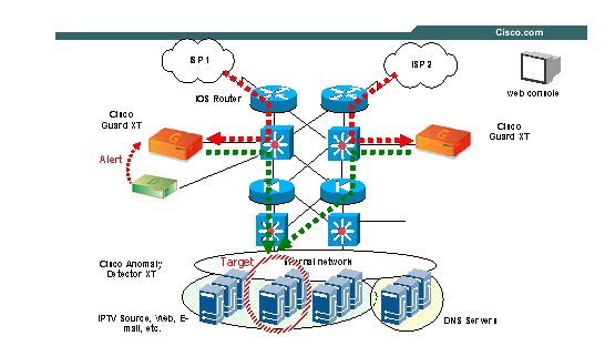 Cisco Guard解決方案提供完整保護(hù)來防御各種DDoS攻擊,甚至那些還未出現(xiàn)的DDOS攻擊。以積極緩解性能為特色,快速檢測攻擊,從合法業(yè)務(wù)中分離出惡意數(shù)據(jù)包,Cisco