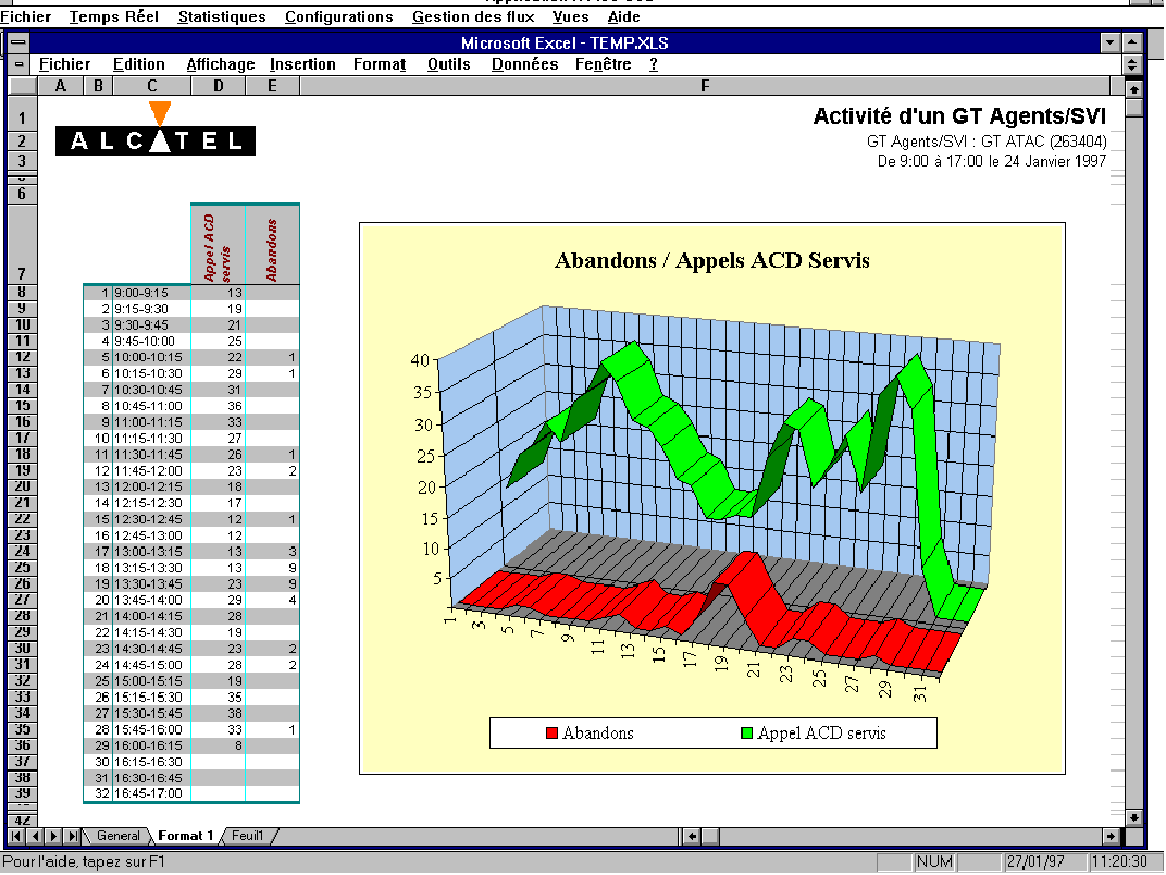 除了實時統(tǒng)計,A4400 CCS 用"Excel" 以擴展式清單和圖表形式提供詳細統(tǒng)計信息。而且,詳細的通話呼叫水平清單能下載到您的數(shù)據(jù)庫(以太網(wǎng)TCP/IP 協(xié)議的FTP)根據(jù)用戶的需要可作后期處理。