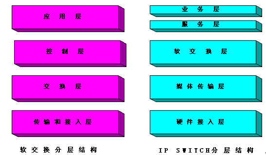 。。SUNTEK IP SWITCH的設計概念參考業(yè)界前瞻性的NGN體系,其體系結構與軟交換的分層結構的對應關系如下: