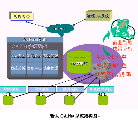新太OA.Net系統(tǒng)基于最新的B/S三層體系結(jié)構(gòu)開發(fā),采用關(guān)系型數(shù)據(jù)庫(SQL Server,Oracle等)結(jié)合群件系統(tǒng)(Exchange、Domino等)的方式,在保證系統(tǒng)高穩(wěn)定性的基礎(chǔ)上充分發(fā)揮了系統(tǒng)的靈活性?蛻舳嘶跒g覽器,無需安裝軟件,版本自動(dòng)更新到客戶端,大大降低了系統(tǒng)維護(hù)的難度。