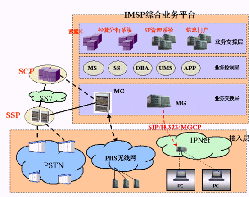 4、 支持標準的SIP/H.323協(xié)議,IMSP支持IP接入,系統(tǒng)可平滑過渡到下一代網絡(NGN),逐步建立符合標準的服務、網絡和終端,徹底取代原有相對獨立的應用服務、通信網絡和終端。;