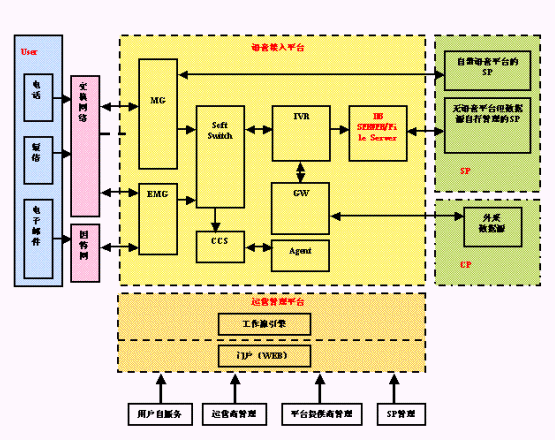 1、 IMSP平臺實現(xiàn)CTI+IN+IP技術特征融合,滿足業(yè)務層面需求多種資源,用戶提供同時包括語音、數(shù)據(jù)、視頻、無線的等業(yè)務在內的綜合化服務。
