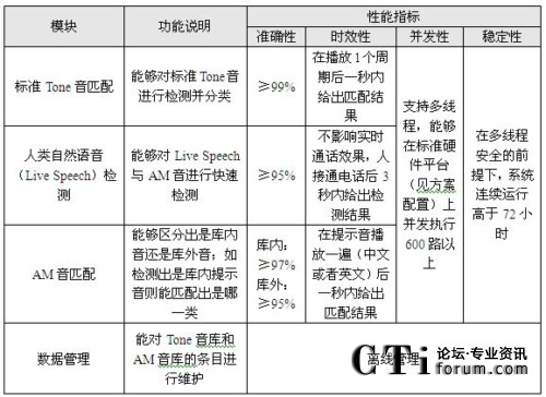 圖中,Tone音匹配采用模式匹配方法,可以實現(xiàn)對振鈴音,忙音,空號,不可達(dá)音等100多種標(biāo)準(zhǔn)提示音的識別。AM(Answering Machine)音匹配主要負(fù)責(zé)識別傳真機、自動答錄機等機器語音,同樣采用模式匹配方法,將收到的語音與標(biāo)準(zhǔn)樣本庫進(jìn)行比對。人類自然語音檢測的功能主要通過人真實聲音的檢測,來判斷是否需要進(jìn)行語音匹配。