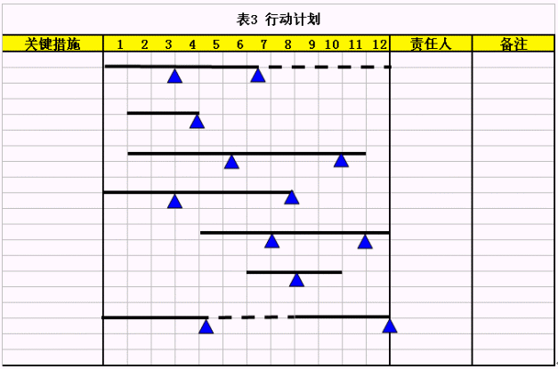 有經(jīng)驗的管理者都有體會,年度規(guī)劃對于全年的工作將產(chǎn)生決定性影響,因此在設(shè)計每一個關(guān)鍵措施的時候,多想想 "問題"和"風險"是非常有好處的。表1是規(guī)劃關(guān)鍵措施的工具,將有助于我們思考的更加全面。