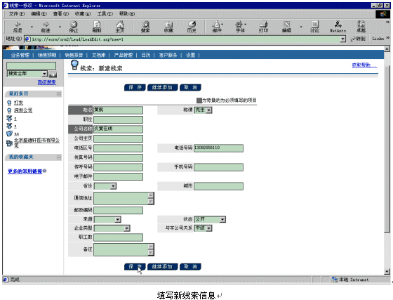Ebanswers CRM系統(tǒng)去激活相關(guān)客戶資料的IE頁(yè)面進(jìn)行處理:如果此號(hào)碼數(shù)據(jù)庫(kù)中存在,則顯示此人的信息,如果不存在,則顯示CRM中添加新線索的頁(yè)面。而Ebanswers