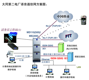 大同第二發(fā)電廠二期擴建需要建設一個新的語音交換系統(tǒng),既用于電廠內(nèi)行政通信,又可以成為廠內(nèi)和公網(wǎng)語音通信匯接中心。