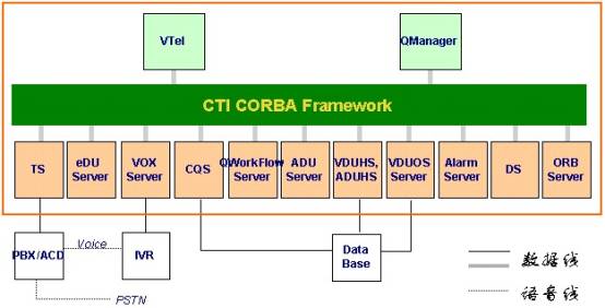 市場(chǎng)上有很多CTI產(chǎn)品,如AVAYA的CVCT、Dialogic(已被Intel收購)等。這些CTI僅相當(dāng)于圖3中的“TS”(電話服務(wù)器),由此可見QCTI具有明顯的比較優(yōu)勢(shì):