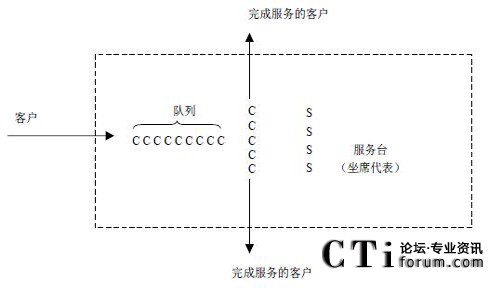 呼叫中心是一個典型的排隊系統(tǒng)。電話一個接著一個到來,接受各種服務(wù)。如果一個到達(dá)的客戶不能立即接受服務(wù),這個客戶就加入到一個隊列中進行等待,圖示是一個單隊列的排隊模型,如果呼叫中心擁有多個隊列,則需要構(gòu)造多個上述的排隊模型。