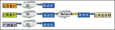 目標(biāo)服務(wù)客戶分散于各地,而客戶服務(wù)中心的座席集中于一地,通過IP將各地話務(wù)路由到座席所在地進行電話服務(wù),大大節(jié)省呼叫中心座席的人工成本和通訊成本。