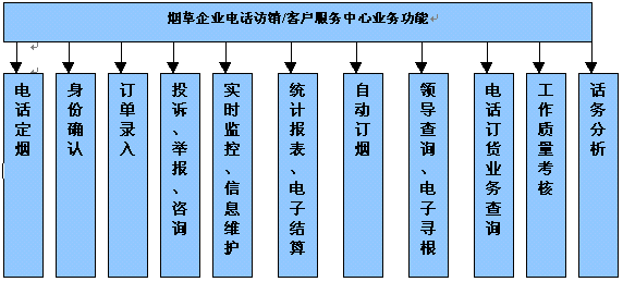 隨著國內(nèi)煙草專賣體制市場化進(jìn)程的不斷推進(jìn),在煙草全行業(yè)建立以"電話訂貨、網(wǎng)上配貨、電子結(jié)算、現(xiàn)代物流"為基本特征的現(xiàn)代流通體制已經(jīng)成為必然的選擇,實(shí)現(xiàn)煙草專賣體制下舊的和落后的營銷體制向現(xiàn)代營銷體制的轉(zhuǎn)變。煙草企業(yè)建立電話訪銷/客戶服務(wù)系統(tǒng)的目標(biāo)是最大程度地提高客戶的滿意度,其核心是實(shí)現(xiàn)高水平的建設(shè)水平,提高企業(yè)對(duì)市場的控制力,最終保證企業(yè)擁有持續(xù)的競爭力和良好的贏利。