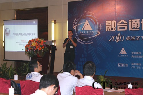 CTI論壇(ctiforum)9月10日消息(記者 楊毅):2010年9月9日奧迪堅在廣州市嘉鴻華美達廣場酒店舉辦的“下一代融合通信平臺華南研討會” 圓滿落下帷幕。本次會議以 “融合通信” 為主題,將最新的由“IPT、IPCC、UC和Mobility”四個部分組成的融合通信技術(shù)完美呈現(xiàn)在嘉賓眼前,吸引了業(yè)界眾多知名廠商和媒體,并得到了奧迪堅在各個行業(yè)的新老客戶的積極響應和參與。通過奧迪堅的精彩主題演講、現(xiàn)場的情景秀表演和眾多案例分享等多種形式,與合作伙伴及嘉賓共同探討融合通信技術(shù)該如何發(fā)展、解讀渠道新政策、同時更加深入了解奧迪堅產(chǎn)品,提高合作伙伴在市場上的競爭力。CTI論壇(www.yingtongzm.com)獨家承辦此次會議,并進行全程報道。
