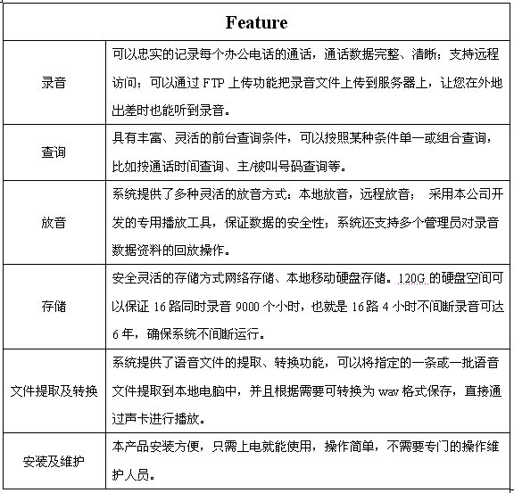 1. 錄音服務(wù)器采用嵌入式(Embedded)Linux操作系統(tǒng),高性能壓縮芯片,語(yǔ)音文件僅為1KB/S,綜合性價(jià)比突出;