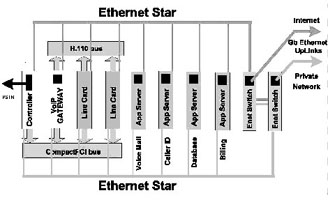 通常VoIP、語音信箱、主叫號碼顯示、各種基于數(shù)據(jù)庫的應(yīng)用等電信增值業(yè)務(wù)是通過PBX以及和PBX IP網(wǎng)接口連接的一系列服務(wù)器來實現(xiàn),這種系統(tǒng)構(gòu)成有很多不足的地方,比如:系統(tǒng)設(shè)備的標準相對封閉、系統(tǒng)構(gòu)成復雜、維護較困難、系統(tǒng)擴展難度較大、系統(tǒng)的體積較大等等。