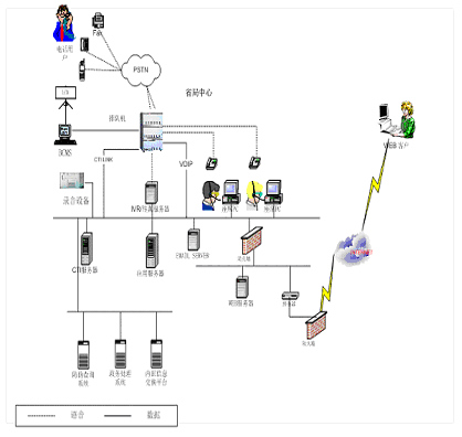 2 ) CTI(計(jì)算機(jī)電話集成)服務(wù)器:通過該平臺實(shí)現(xiàn)計(jì)算機(jī)網(wǎng)絡(luò)與電話系統(tǒng)的無縫結(jié)合,可通過計(jì)算機(jī)應(yīng)用系統(tǒng)對話務(wù)處理進(jìn)行操作;