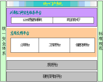 2 )系統(tǒng)基于 J2EE架構(gòu),采取三層結(jié)構(gòu)設(shè)計(jì),分為前端應(yīng)用(外部公共信息服務(wù)平臺)、應(yīng)用支撐平臺和系統(tǒng)軟硬件平臺,以應(yīng)用支撐平臺為核心,以安全和標(biāo)準(zhǔn)為保證。