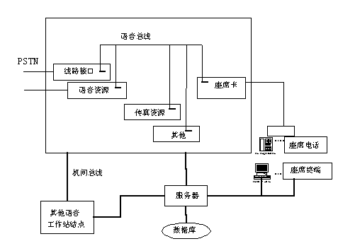 所謂的PC方式就是計(jì)算機(jī)+語音板卡,即在微機(jī)平臺(tái)上集成各種功能的資源處理卡,完成通信接口、語音處理、傳真處理、座席轉(zhuǎn)接等功能,再結(jié)合外部的計(jì)算機(jī)網(wǎng)絡(luò)實(shí)現(xiàn)各種應(yīng)用系統(tǒng)的需求。整個(gè)系統(tǒng)是一個(gè)Client/Server結(jié)構(gòu)的微機(jī)網(wǎng)絡(luò)。