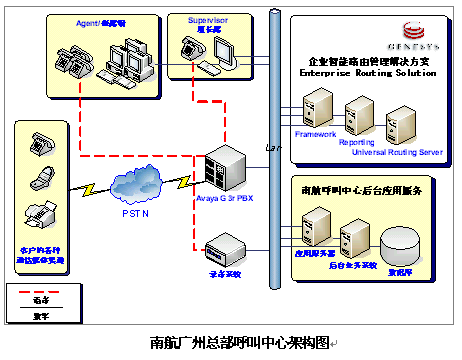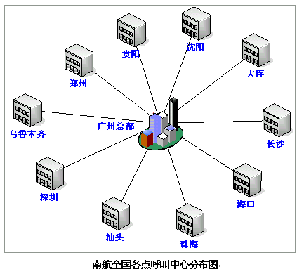 始自2002年eSOON & Genesys 成為南方航空的CTI軟件提供商,為其打造全國客服中心網(wǎng)絡。 廣州是南方航空公司的總部所在,自然就成為全國網(wǎng)絡的中心;除廣州以外,南方航空還擁有全國10個地區(qū)的航線基地,絕大部分基地均為省會城市或主要商業(yè)中心。到目前為止,作為網(wǎng)絡據(jù)點的貴陽、長沙、烏魯木齊、沈陽、深圳、珠海、汕頭以及?诘确贮c已成功投入使用,另湖北、河北等省份的中心城市也在規(guī)劃階段中。