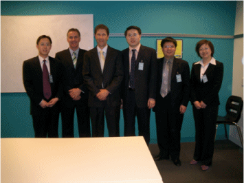 從左至右分別為華夏銀行工程師雷宏、GENESYS主管、澳新銀行客戶服務(wù)中心項(xiàng)目管理與運(yùn)營經(jīng)理Allan Hopson,華夏銀行網(wǎng)絡(luò)銀行部總經(jīng)理黎清、華夏銀行個人業(yè)務(wù)部副總經(jīng)理宋曉波、華夏銀行客戶服務(wù)中心經(jīng)理彭凌