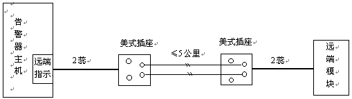 見下圖,遠端模塊與告警主機通過二蕊電話線相連,連線距離可達5公里,連接不分極性,可正接或反接