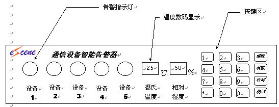此產品不愧為機房管理人員的好幫手。它收集各種通信設備的告警信息,檢測機房溫度、濕度。一發(fā)現(xiàn)有異常情況便立即發(fā)出聲光報警,同時讓遠端指示模塊發(fā)出告警,另外還會自動將告警信息送到您腰間的BP機,即使您出門在外也隨時洞悉機房異常情況。