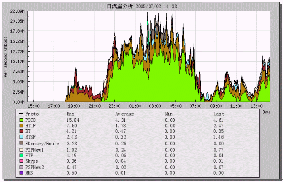 - 7月1日21點-2日7點是流量高峰期,主要為POCO和HTTP流量。POCO為一種下載工具,網(wǎng)吧用戶使用POCO在夜間大量下載信息;