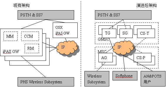GW軟件改造而來(lái),只需新增CS-P即可?偟膩(lái)說(shuō),核心網(wǎng)的演進(jìn)只是增加CS-P、擴(kuò)容CS-T、原有的iPAS GW軟件升級(jí)為TG/AG,就可以建立其一個(gè)具有多種終端接入能力的開(kāi)放性多媒體VoIP移動(dòng)軟交換網(wǎng)絡(luò),而原有的PHS系統(tǒng)功能又不會(huì)受到影響。