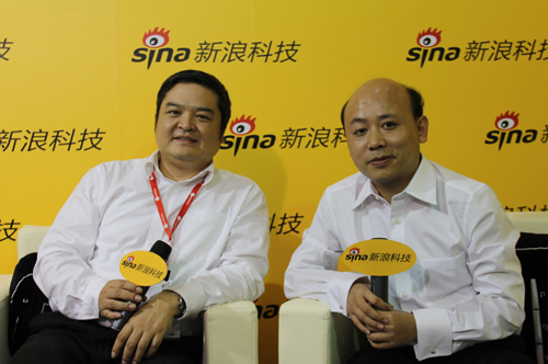 圖:UT斯達康副總裁謝永紅(左)和新浪科技主持人康釗(右)
