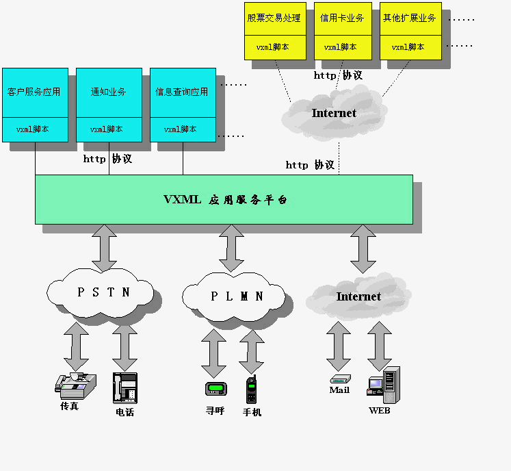 基于VXML的語音應(yīng)用平臺(tái)使得象電話這種最傳統(tǒng)的通訊工具可以實(shí)時(shí)便捷地訪問因特網(wǎng),而無需任何座席的幫助。