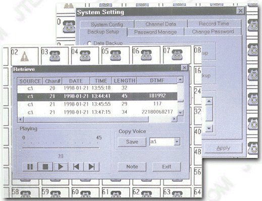 每個電話通道都有自動增益(AGC)功能,可解決長途電話、國際電話、或偏遠(yuǎn)地區(qū)電話信號不良等問題。采用數(shù)字化錄音有效避免了傳統(tǒng)磁帶式錄音易失真、難保存的缺點。先進(jìn)的錄音系統(tǒng)設(shè)計,使通話雙方覺察不到正在錄音或監(jiān)聽。 錄音文件為.VOC格式,同時也可隨意的向前、向后的移動。 |