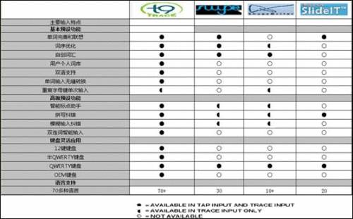 1.T9 Trace是Nuance T9產(chǎn)品組合中的一員,與T9、XT9、T9 Write等輸入技術(shù)共同為用戶打造多模式輸入體驗(yàn),使用戶擁有更多選擇,可以按照個(gè)人喜好輕松組合更快捷的輸入方法。這是市面上類似產(chǎn)品,例如Swype,僅能依靠單一的滑行輸入所不能比擬的。