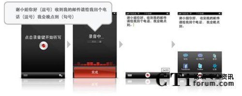 聲龍(Dragon)系列應(yīng)用軟件是基于Nuance著名的Dragon NaturallySpeaking® 語音軟件開發(fā)的應(yīng)用,借助語音識別技術(shù),用戶在輕松自然說話時,就可將語音即時轉(zhuǎn)換成要發(fā)送的短信文本或電子郵件,更新社交網(wǎng)絡(luò)狀態(tài)和進行網(wǎng)絡(luò)搜索。事實證明,語音識別的速度比使用鍵盤輸入文字快上五倍以上。