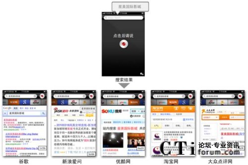 適用于iPhone™、iPad™和iPod touch™的聲龍搜索(Dragon Search)同時也在蘋果 App Store推出,為用戶提供強大的語音搜索功能。基于該產(chǎn)品,用戶只需說出自己的搜索要求,便可通過移動網(wǎng)絡(luò)找到相應(yīng)的信息和答案。 另外,聲龍搜索(Dragon Search)創(chuàng)新的搜索功能界面(Dragon Search Carousel)還可以支持用戶同時訪問包括谷歌、新浪愛問、優(yōu)酷網(wǎng)、淘寶網(wǎng)和大眾點評網(wǎng)等多個熱門網(wǎng)站和搜索引擎,并在幾秒鐘內(nèi)獲得來自多個內(nèi)容來源的搜索結(jié)果。
