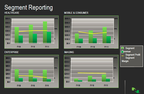 2011財年,Nuance醫(yī)療保健部門營收5.26億美元,同比增17.3%;利潤2.69億美元,同比增18.5%。手機(jī)及大眾消費者領(lǐng)域營收3.93億美元,同比增27.1%;利潤1.7億美元,同比增42.4%。企業(yè)服務(wù)領(lǐng)域營收2.96億美元,同比持平;利潤6330萬美元,同比下降23%。圖像領(lǐng)域營收1.77億美元,同比增26.1%;利潤6910萬美元,同比增24.3%。