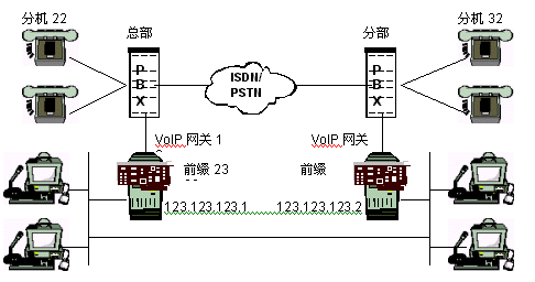 PBX,它用于在LAN上完成呼入及呼出操作。這種方案對(duì)小型辦公室非常有用。它不僅可以實(shí)現(xiàn)傳統(tǒng)的硬件PBX的所有特性,而且還具有更多的優(yōu)勢(shì),因?yàn)檫@種PBX是通過(guò)軟件的方式來(lái)實(shí)現(xiàn)的。