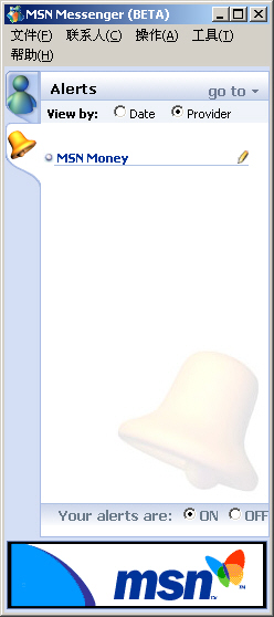 接收MSN Alerts發(fā)出的關(guān)于交通、新聞、天氣、體育、投資、旅游或收到新電子郵件時的通知