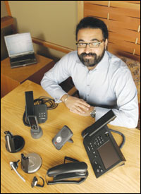 舉例來說,微軟希望在用戶向?qū)Ψ桨l(fā)送即時信息或電子郵件之前,PC軟件能夠在條件允許的情況下使你看到對方,即所謂的“一鍵(one clike)實(shí)現(xiàn)通信”(即如果你要呼叫對方,只須在他們的名字上輕點(diǎn)鼠標(biāo))。同時,微軟也開始充分利用電話,專門研發(fā)了代號名為“Tanjay”的語言設(shè)備。這個形似智能電話的設(shè)備通過將軟件應(yīng)用于語音設(shè)備中,使語音成為豐富多樣的PC協(xié)作體驗(yàn)的一部分。