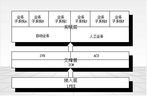 支撐層由ICM、IVR、ACD以及Web協(xié)同、座席管理、傳真、錄音管理、業(yè)務(wù)流程生成等子系統(tǒng)組成。形成獨(dú)立于用戶(hù)業(yè)務(wù)的通用支撐系統(tǒng),其核心是ICM