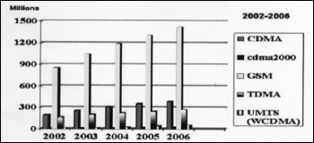 2001年12月全球數(shù)字移動用戶的技術(shù)比例