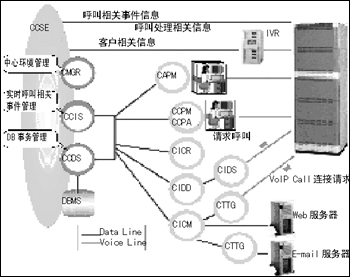 CICM CICM是Internet解決方案中的核心模塊,該模塊完成系統(tǒng)涉及到互聯(lián)網(wǎng)所有通話(huà)的控制,包括VoIP、E-mail、Chatting、畫(huà)像通話(huà)等。當(dāng)一個(gè)網(wǎng)上呼叫呼入時(shí),由CICR返回所分配的話(huà)務(wù)員相關(guān)信息(如IP),然后CICM將該信息送給客戶(hù),使網(wǎng)絡(luò)聊天和Web到電話(huà)的通話(huà)得以同步。