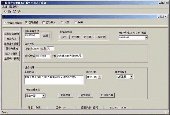 博宇公司旅行社多媒體客戶服務中心人工座席界面