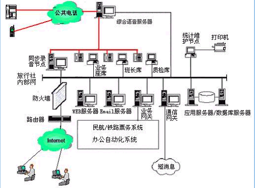 對于20個以下人工座席的中小型旅行社客戶服務中心系統(tǒng),則建議使用基于計算機語音板卡的方式,可以減少投資,同時具有良好的系統(tǒng)性能;對于大型的旅行社客戶服務中心系統(tǒng),可選用排隊交換機作為語音接入設備,以保障系統(tǒng)的高可靠性和穩(wěn)定性;大大提高了系統(tǒng)的適應面。