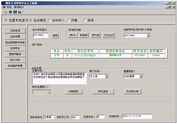 農業(yè)分布式呼叫中心將接入功能、導航功能、自動語音查詢功能、人工座席服務功能、話路轉接功能、信息資料處理緊密聯(lián)系起來。用戶撥打特服電話號碼后,可以根據需要選擇人工服務、自動語音查詢、自動留言,并能夠在幾種服務中來回切換或轉接其它電話,也可以路由到遠程座席;所記錄的資料可以分門別類的進行統(tǒng)計并形成報表,供相關部門進行檢索查閱;意見處理完畢,可由人工座席主動呼叫用戶,告知處理意見,形成閉環(huán)處理流程;可定期進行信息歸納、推演、預測等,從而得到信息深加工品。