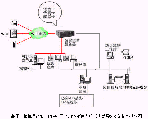 本系統(tǒng)物理結(jié)構(gòu)由帶語音板卡的高性能工控機(jī)(稱為綜合語音服務(wù)器,在功能上可以分為CTI服務(wù)器、IVR(交互式語音應(yīng)答)/IFR服務(wù)器、統(tǒng)計維護(hù)管理工作站、數(shù)據(jù)庫/應(yīng)用服務(wù)器、錄音留言工作站、業(yè)務(wù)網(wǎng)關(guān)服務(wù)器、業(yè)務(wù)代表座席、網(wǎng)絡(luò)系統(tǒng)等和應(yīng)用軟件構(gòu)成。
