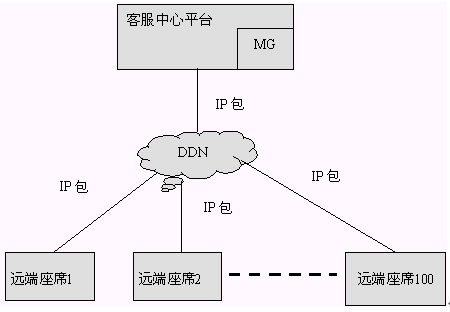 通過VOIP方式聯(lián)網(wǎng)時,語音和傳真都是通過VOIP技術處理以IP包的形式在遠端座席和中心之間進行傳輸。在主呼叫中心和遠端模塊,都需要設立媒體網(wǎng)關,語音和傳真的聯(lián)網(wǎng)都是通過媒體網(wǎng)關處理后通過DDN相連的。