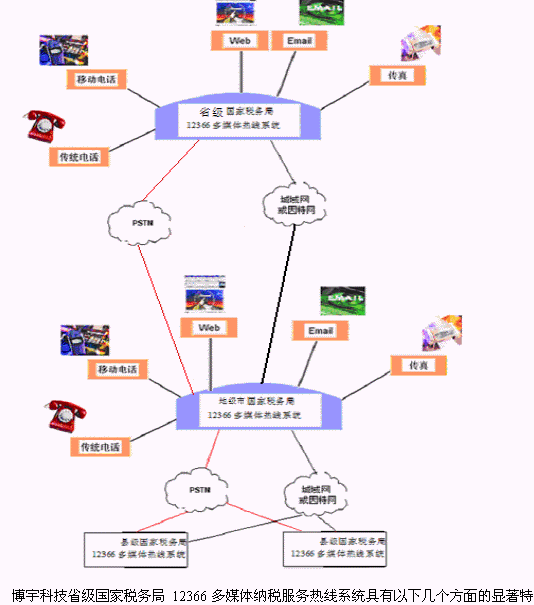五 博宇科技省級國家稅務(wù)局12366多媒體納稅服務(wù)熱線系統(tǒng)的聯(lián)網(wǎng)方案
