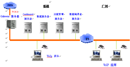 于本年一月初,基于Concerto Software平臺(tái)建設(shè)的中港跨境呼叫中心正式由本公司替GIS于香港及廣州開(kāi)通。初期于廣州之座席數(shù)目為24。廣州與香港間透過(guò)1條E1專線連接。(結(jié)構(gòu)如下)
