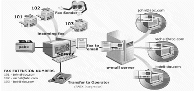 每一個 e-mail地址都可以對應(yīng)一個獨立的傳真分機號碼,當有傳真呼入時,自動地將傳真發(fā)送給指定的接收者
