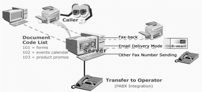 每一個文檔都有一個指定的FOD文檔代碼,顧客以此代碼請求文檔,F(xiàn)OD立即向顧客發(fā)送相應(yīng)的E-mail或傳真。